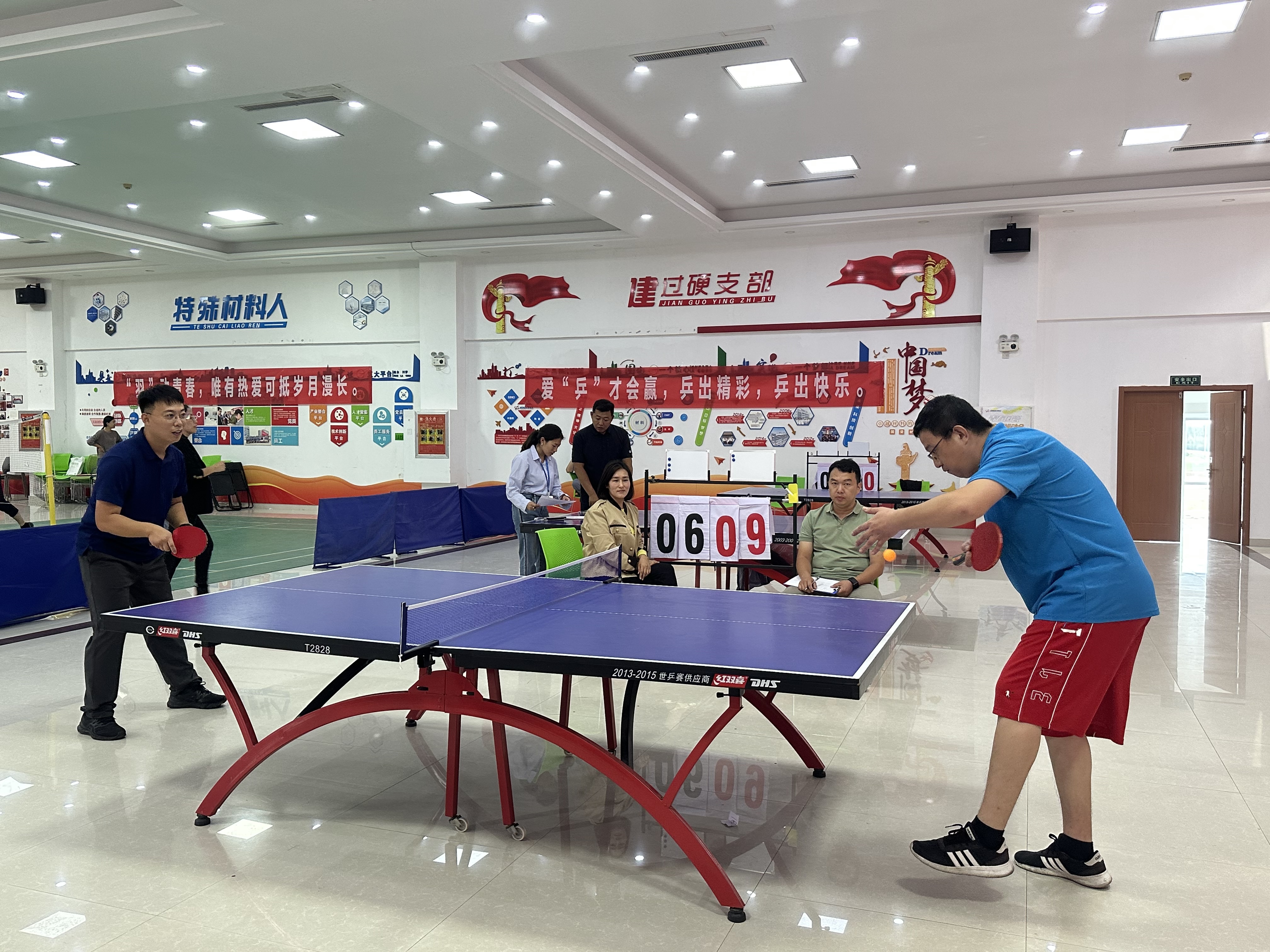 本届运动会设置篮球、足球循环积分赛,乒乓球、羽毛球男单、女单、混双赛,还有实心球、定点投篮、立定跳远、一分钟跳绳、4×100 米接力赛、拔河、摸石过河、巨人的脚步等,历时14天,100多场次比赛。